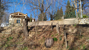 2018 - Refection des murs de cloture. Après la suppression des bambous, le grand mur coté route tient à peine et celui du haut est en vrac.